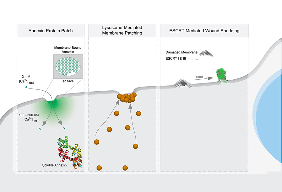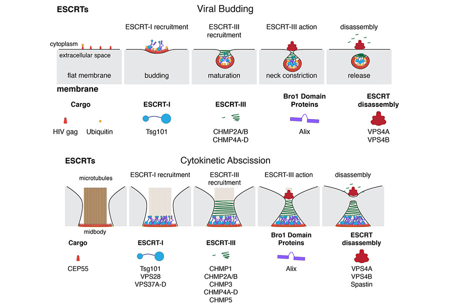 Scientific illustrations depicting cellular processes, membrane trafficking, and molecular biology concepts.